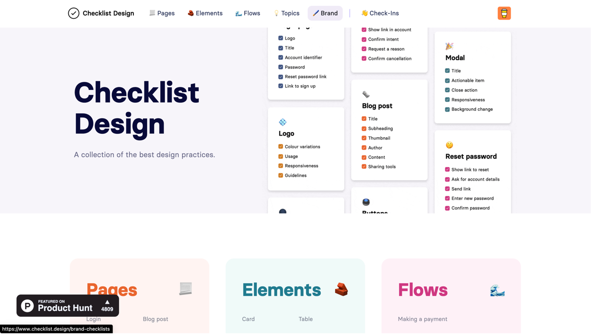 Umfassende Inhalte: Die Website bietet Checklisten für eine Vielzahl von Designelementen und -szenarien. Egal, ob Sie eine Landing Page, eine Mobile App oder ein Dashboard gestalten – hier finden Sie eine passende Checkliste.