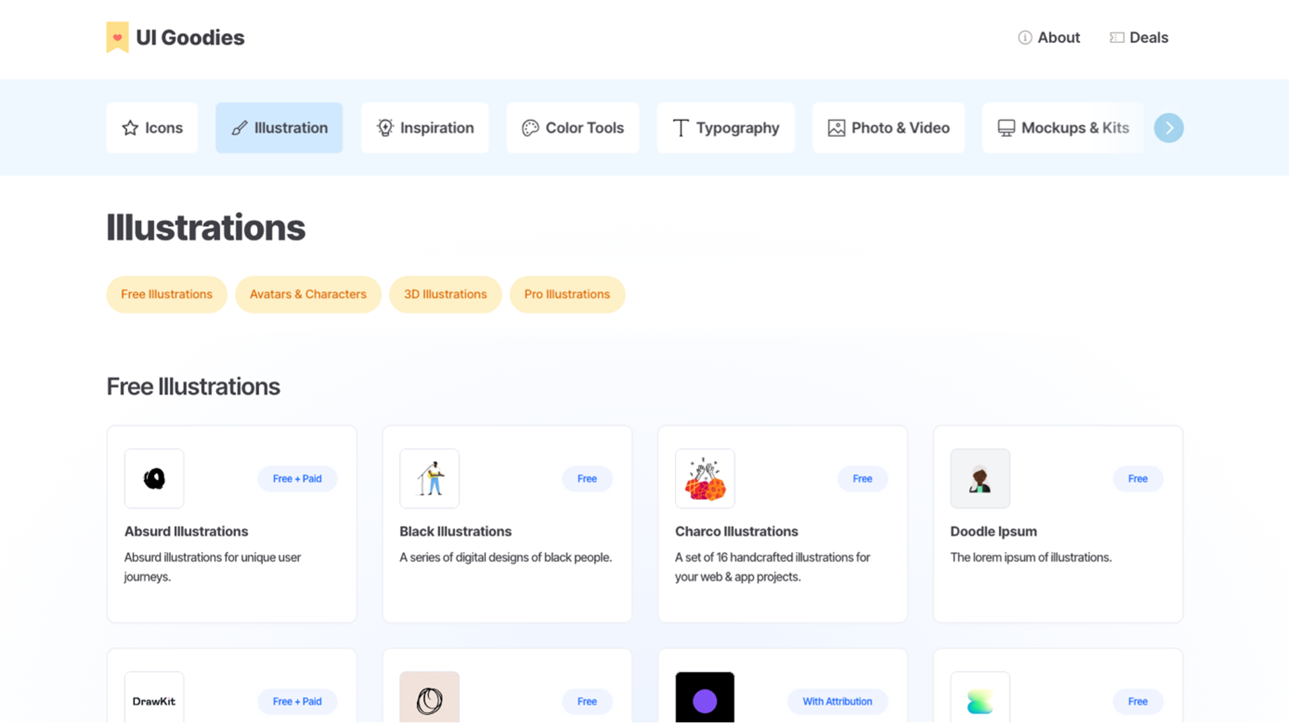 UIGoodies Illustrations ist eine sorgfältig kuratierte Sammlung von qualitativ hochwertigen Illustrationen, die von verschiedenen Künstlern und Designern aus der ganzen Welt erstellt wurden. Es handelt sich um eine Plattform, die sowohl kostenlose als auch kostenpflichtige Illustrationspakete anbietet und somit eine breite Palette von Stilen und Konzepten abdeckt.