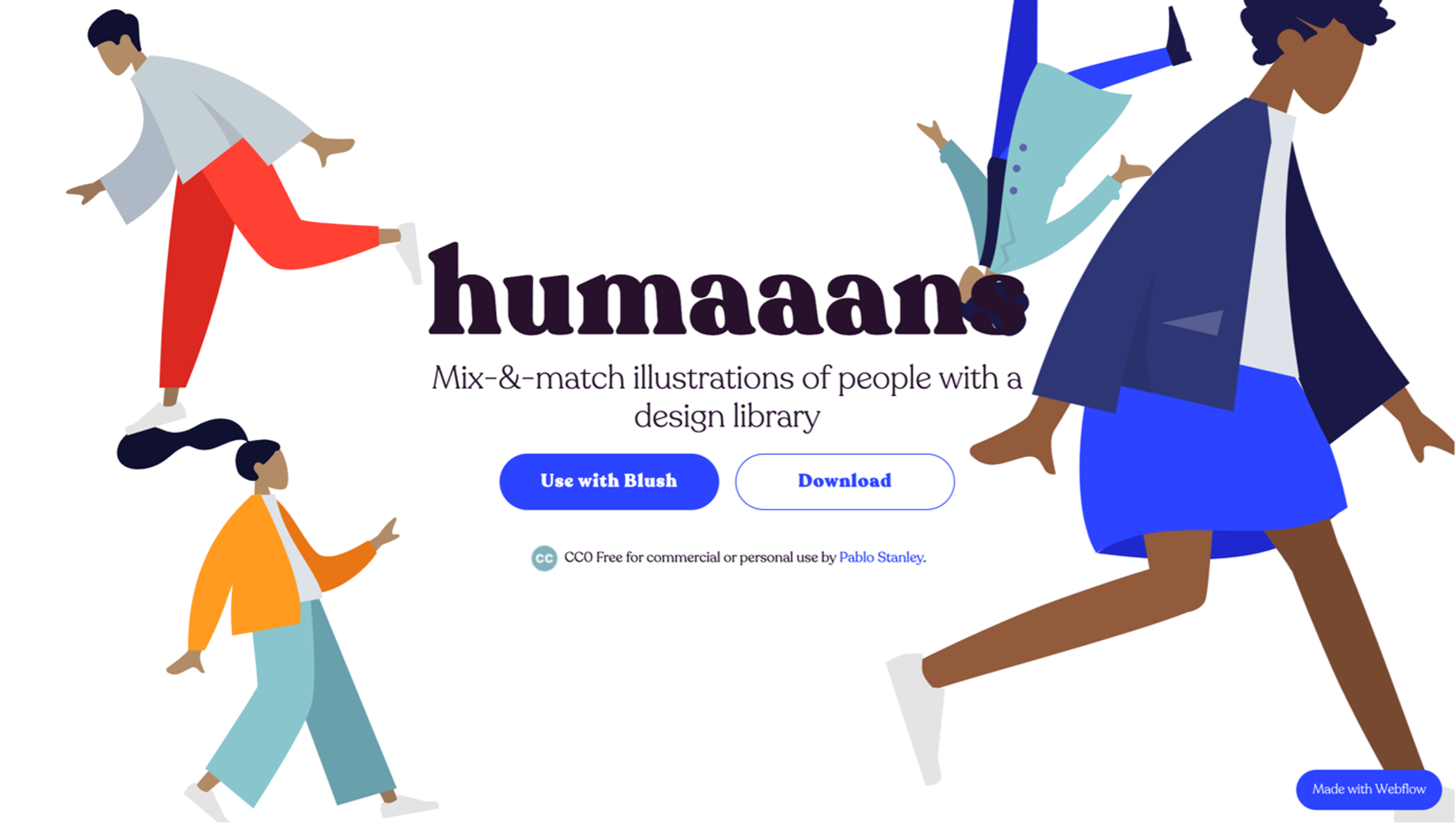 Humaaans ist eine frei zugängliche Sammlung von modularen und skalierbaren Illustrationen von Menschen. Das Konzept dahinter ist simpel, aber genial: Es ermöglicht Designern, Menschenfiguren individuell zu gestalten – von der Körperhaltung über die Kleidung bis hin zu Frisuren und Hintergründen. Mit einfachen Drag-and-Drop-Funktionen können Sie Ihre eigenen „humaaans“ nach Ihren Wünschen anpassen.
