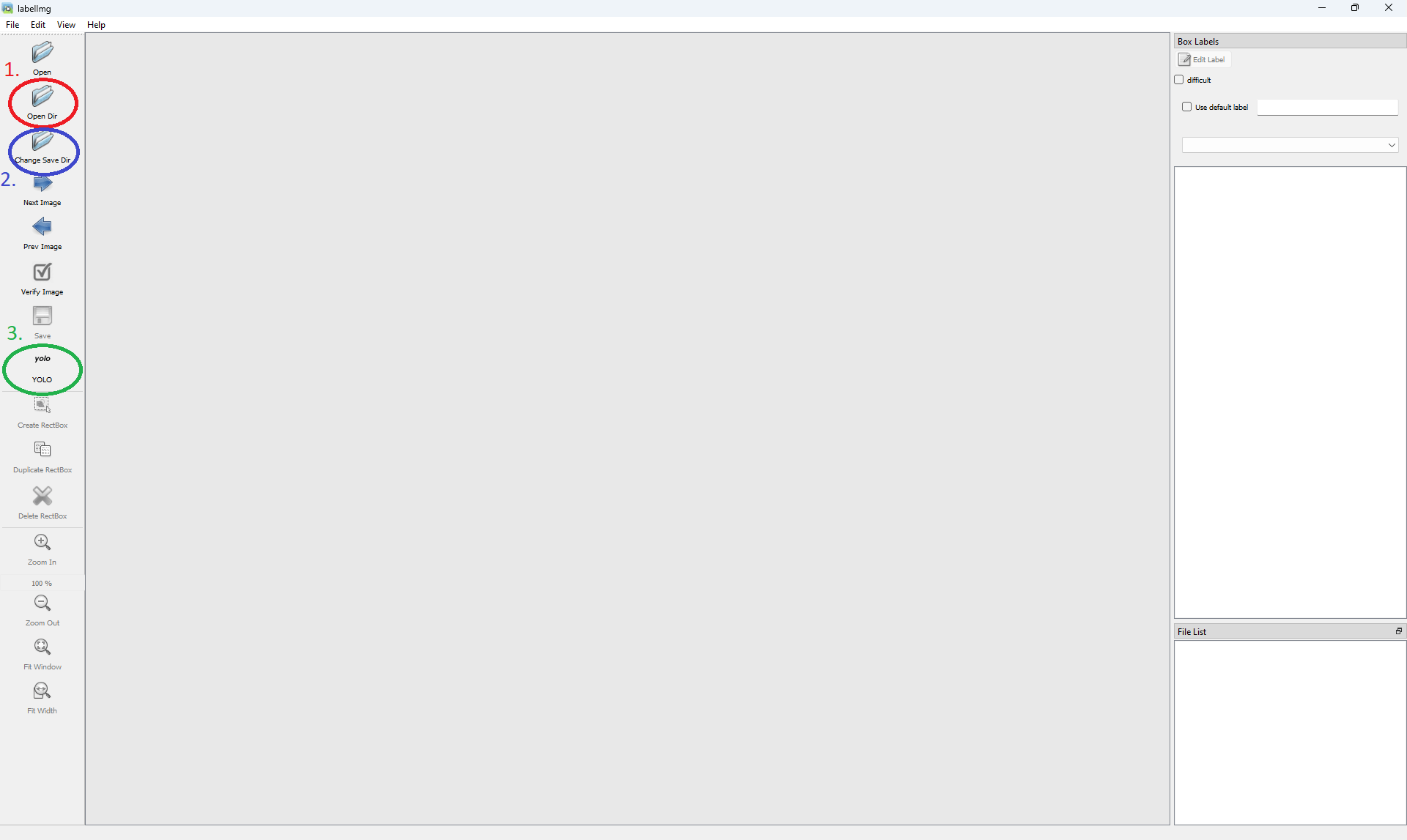 - Öffnen Sie den Ordner mit dem Bilddatensatz in der labelImg-Anwendung.